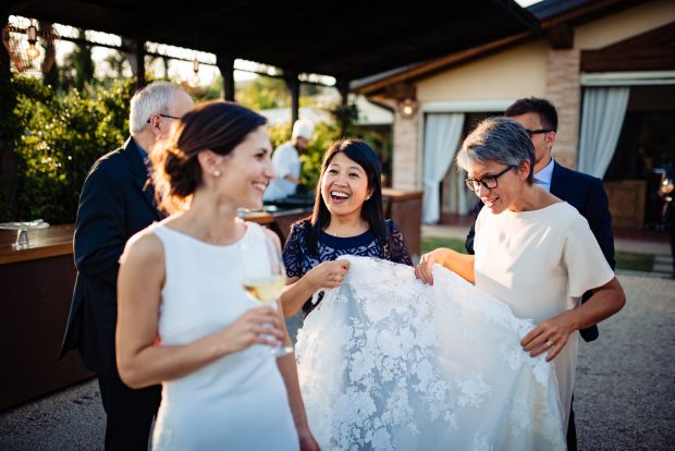 Gli sposi hanno scelto di organizzare l’intero ricevimento all’aperto. Infatti, l’aperitivo è stato servito negli ampi e curati giardini, mentre la cena si è svolta nel grande cortile illuminato da filari di luci sospese tra alberi secolari.. Infatti, l’aperitivo è stato servito negli ampi e curati giardini, la cena nel grande cortile illuminato da filari di luci sospese tra alberi secolari. L’atmosfera ha reso il matrimonio intimo e suggestivo, perfetta per un matrimonio elegante e romantico, con un tocco di stile country-chic.